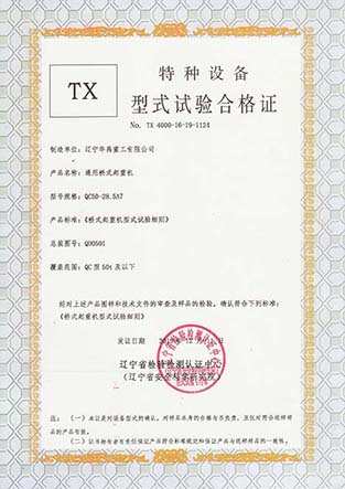 LDP電動單梁型式試驗合格證
